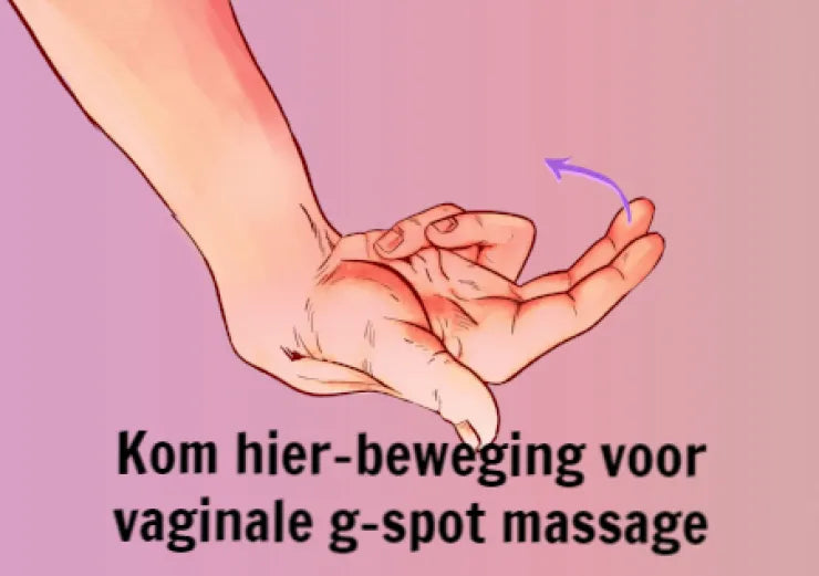Let wel: Uw hand is met de handpalm naar boven gericht. Beweeg uw vinger, al cirkelend en liefdevol masserend, langzaam verder naar achteren. Maak een "kom-hier" beweging met uw vingers. Zo masseert u de g-spot.