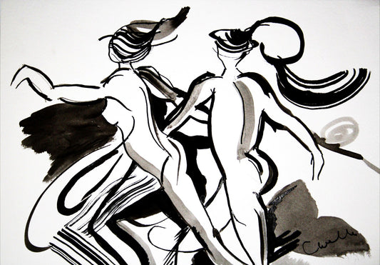 Carla van Welle werkt in een energieke, dynamische stijl waarbij de liefde en intimiteit centraal staan. Haar inktschilderijen stralen warmte en positiviteit uit. De kunstenares gebruikt verschillende soorten inkt om dit vrolijke en liefdevolle effect te bereiken, wat resulteert in kunstwerken die perfect passen bij de sfeer van een slaapkamer.